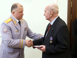 Заместитель начальника Следственного департамента МВД России Данил Филиппов поздравил со 101-летием ветерана Великой Отечественной войны и МВД Георгия Герасимова. Генерал-майор юстиции поблагодарил ветерана за годы, отданные службе Отечеству, и пожелал Георгию Герасимовичу крепкого здоровья и стойкости духа. Данил Владимирович зачитал памятный адрес, в котором Заместитель Министра внутренних дел Российской Федерации – начальник Следственного департамента МВД России генерал-полковник юстиции Сергей Лебедев обратился к ветерану с такими словами: