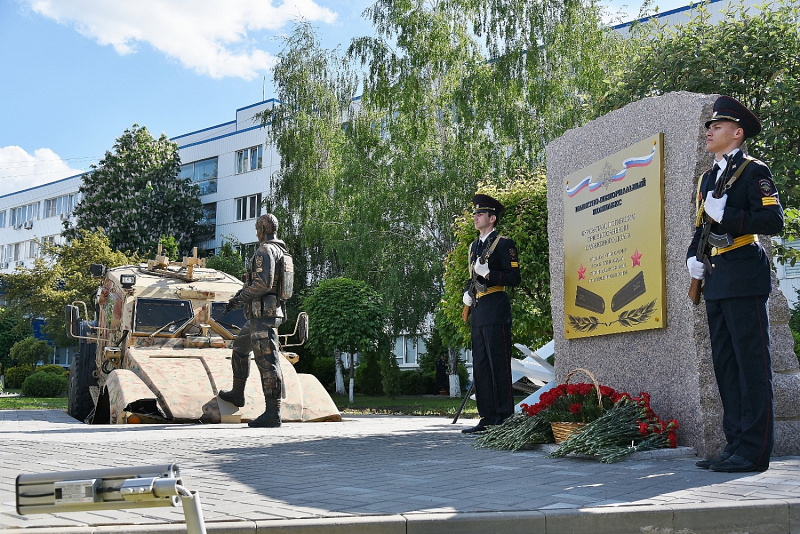 В завершение встречи Захар Прилепин возложил цветы к памятно-мемориальному комплексу курсантам, погибшим при выполнении служебного долга.