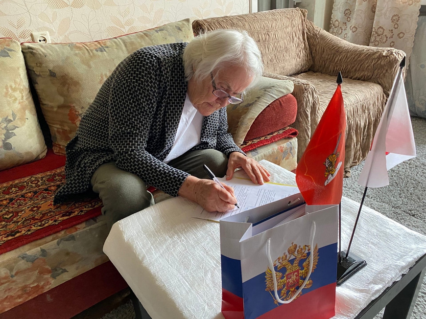 Александр Иванов поздравил пожилую женщину с получением гражданства Российской Федерации, вручил паспорт, пожелав крепкого здоровья и бодрости духа.