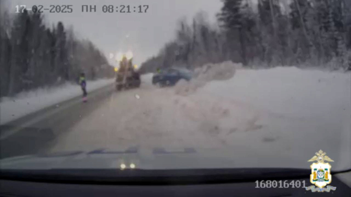 Инспекторы привлекли на помощь проезжавшую мимо спецтехнику, которая расчистила снег и при помощи буксировочного троса вытащила увязнувшую иномарку. В это время полицейские обеспечивали безопасность дорожного движения.
