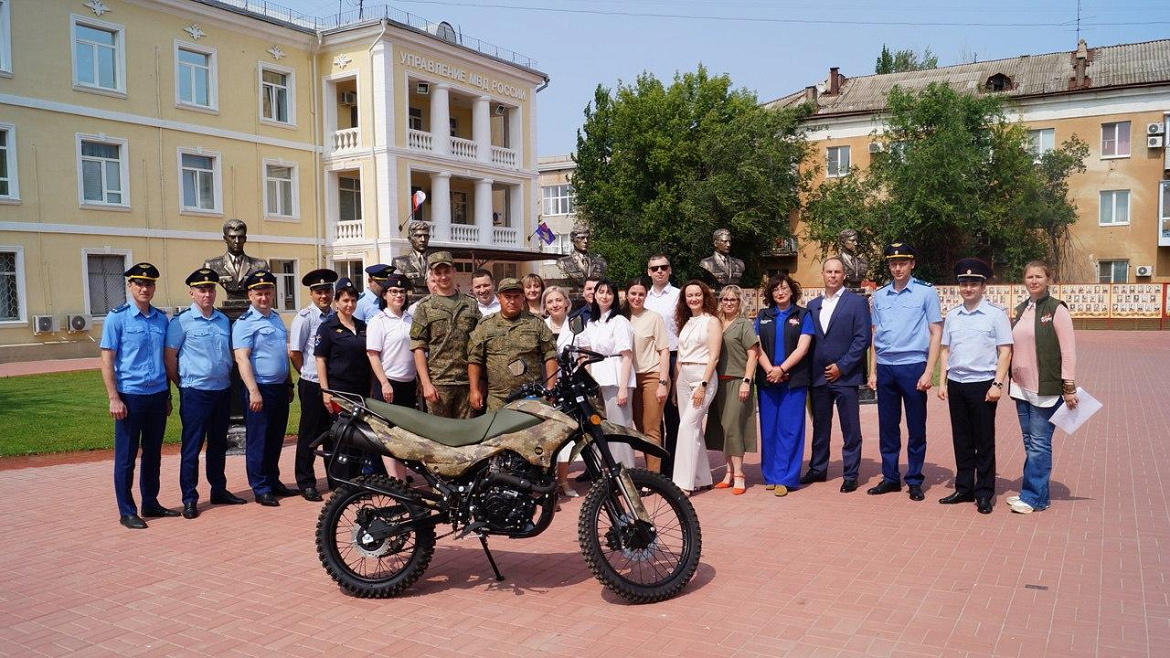 Внедорожный мотоцикл передали бойцам СВО сотрудники полиции, прокуратуры и суда из г. Волжского