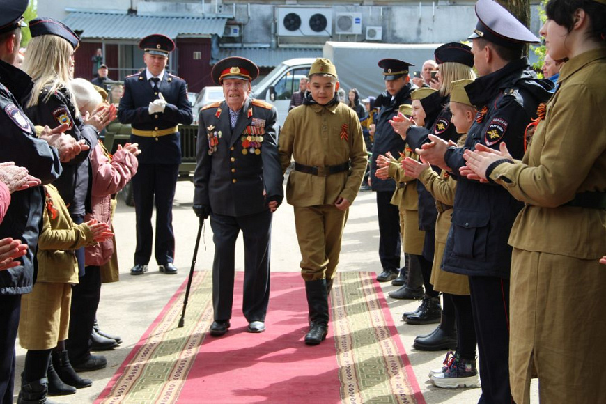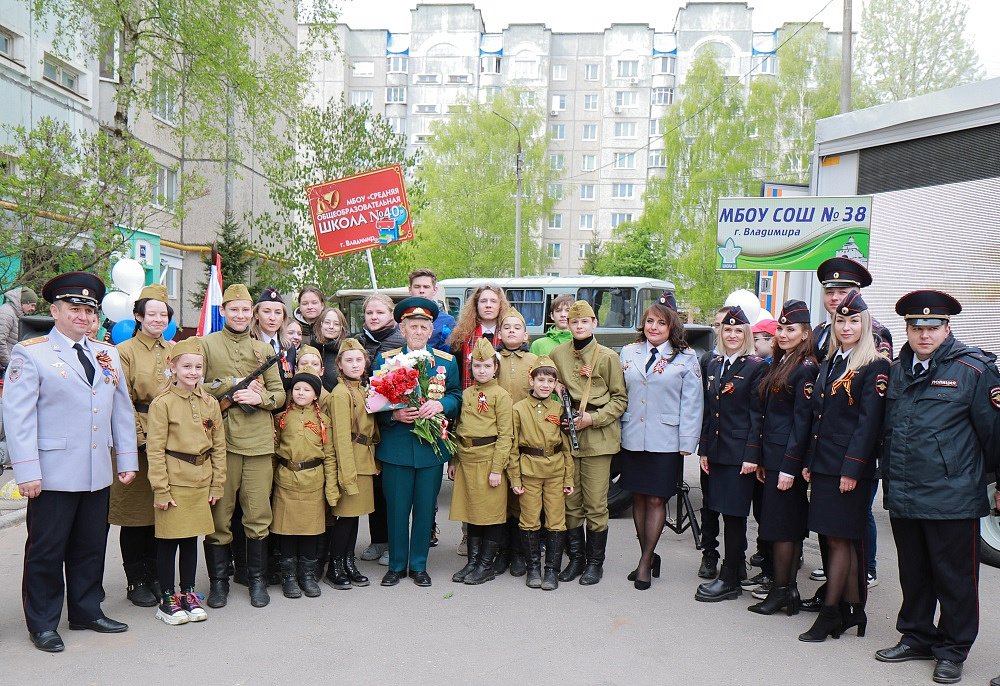6 мая накануне 78-ой годовщины со дня Победы в Великой Отечественной войне 1941-1945 гг. сотрудники полиции, члены Общественного совета при УМВД России по городу Владимиру вместе с владимирскими школьниками по сложившейся доброй традиции организовали концертные программы во дворах домов, где живут ветераны органов внутренних дел – участники Великой Отечественной войны Михаил Лупович Дворников и Борис Николаевич Павлов.