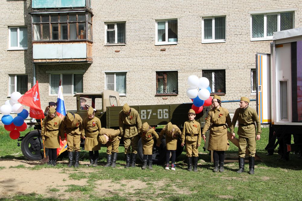 Участники праздничного мероприятия организовали импровизированную сцену в кузове фронтового грузовичка. Сотрудники полиции вместе со своими детьми и учениками нескольких школ областного центра читали трогательные стихи и пели душевные песни под аккомпанемент оркестра Управления МВД России по Владимирской области. Воссоздать атмосферу военных лет помогла и полевая кухня.