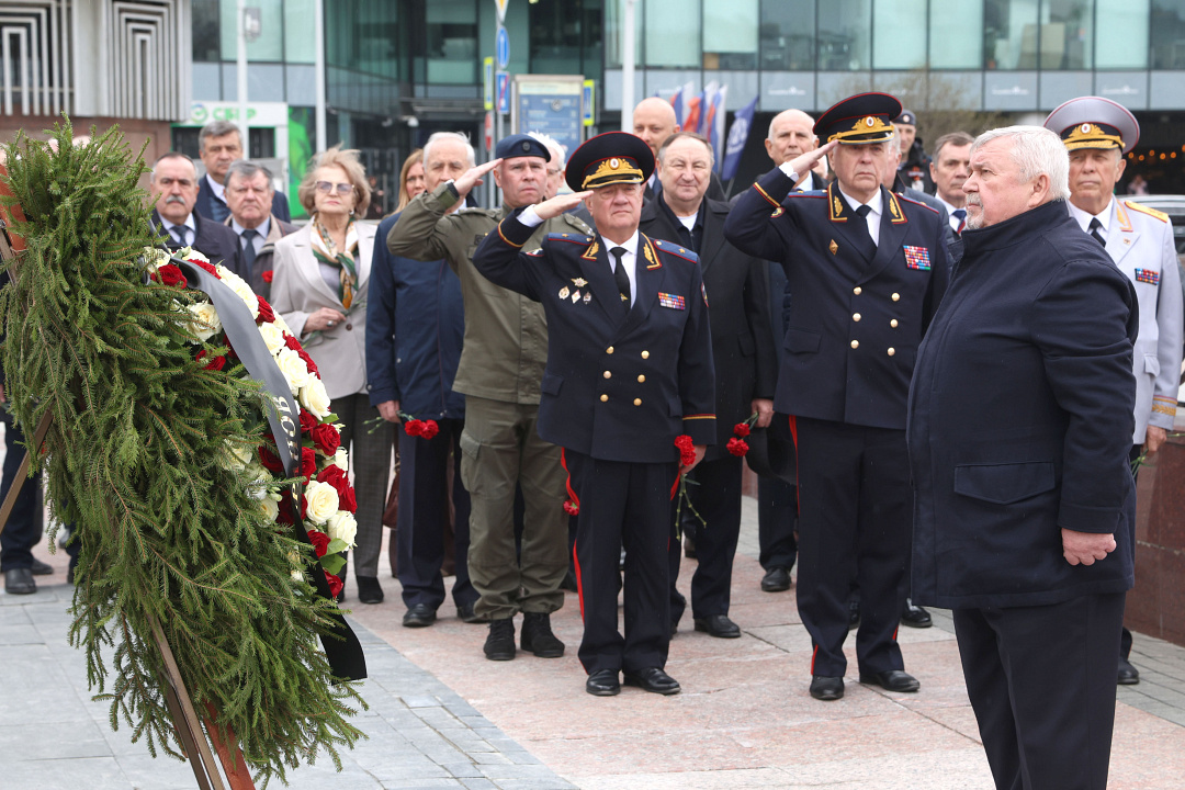 Участники возложили к памятнику венок и цветы и почтили память сотрудников, погибших при выполнении служебных обязанностей, минутой молчания.