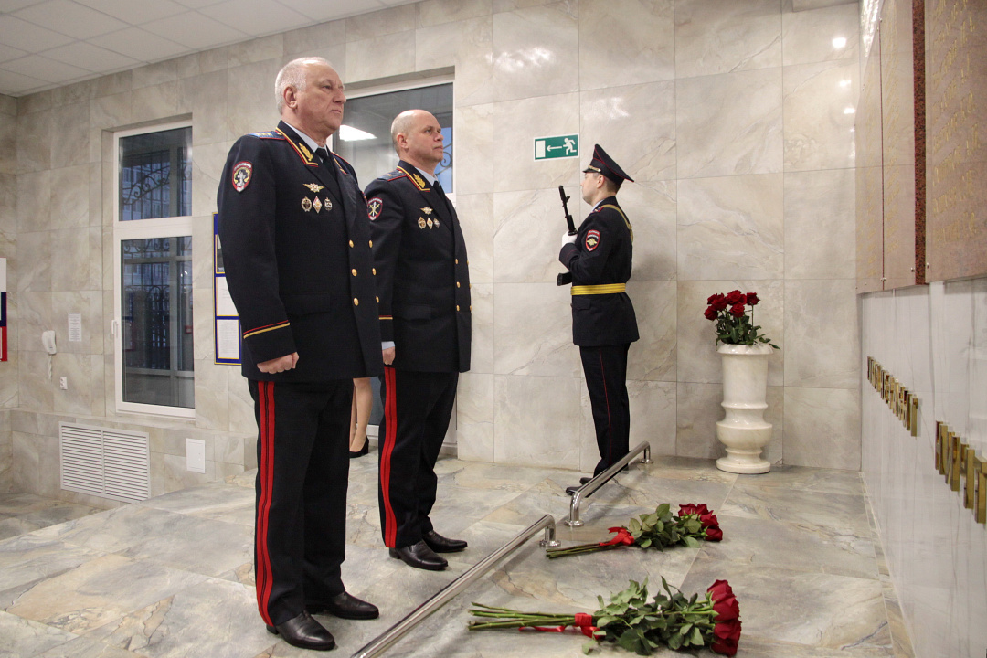 Александр Кравченко и Александр Арапов возложили цветы к Мемориалу сотрудникам органов внутренних дел Костромской области, погибшим при выполнении служебных обязанностей, а также посетили ведомственный музей, ознакомились с историей костромских милиционеров-полицейских.