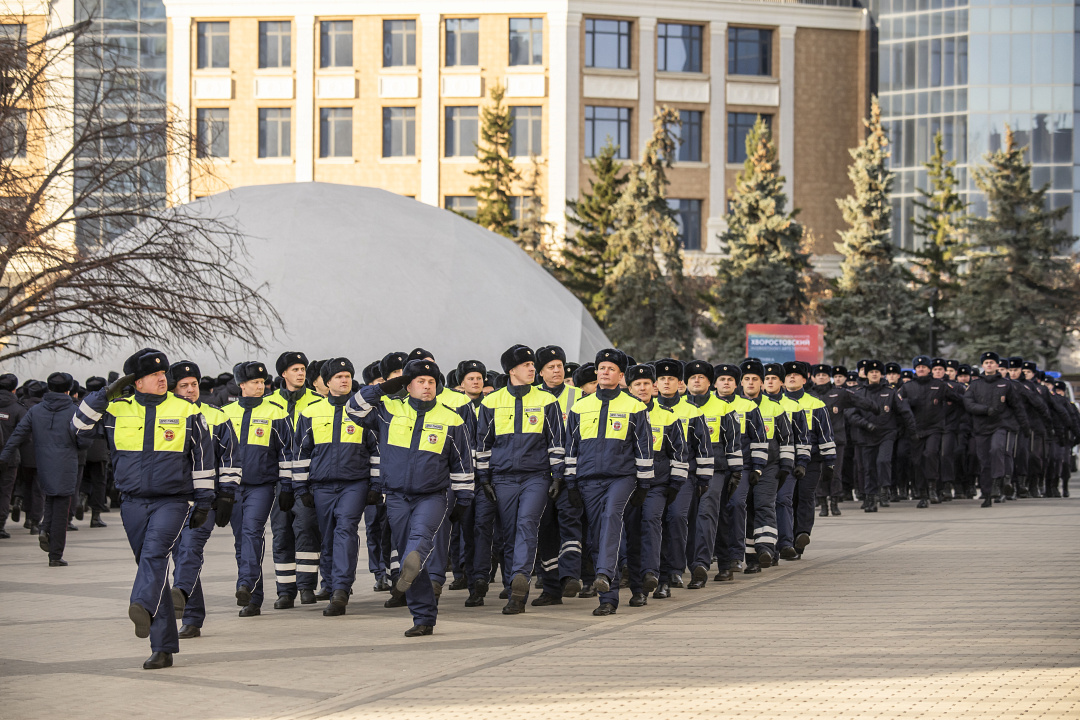 Закончился гарнизонный развод торжественным маршем заступивших на службу нарядов полиции и Росгвардии, которые сразу после мероприятия отправились на дежурство.