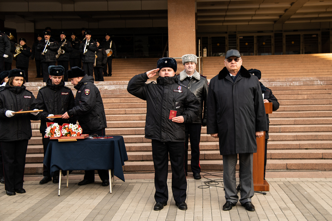 На мероприятии также присутствовали начальник ГУ МВД России по Красноярскому краю генерал-майор полиции Александр Соловьев и руководители аппарата краевой полиции.