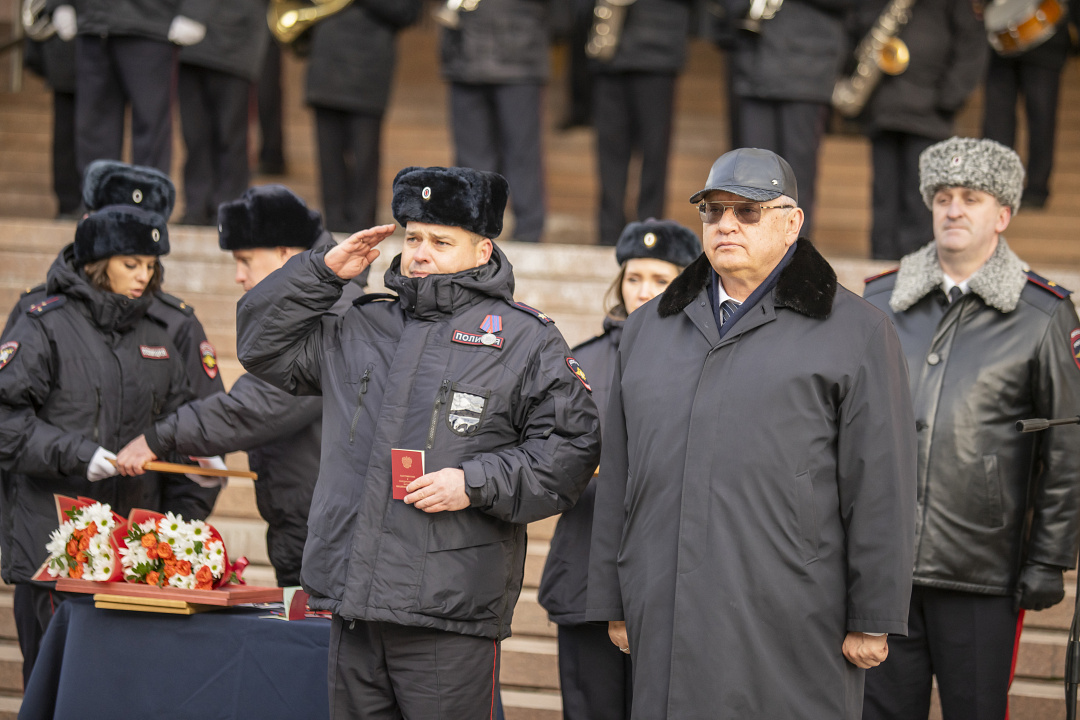 Сотрудникам, которым были присвоены первые специальные офицерские звания, Игорь Зубов вручил погоны. Также он передал руководителям отделов полиции сертификаты на служебные машины. 16 новых отечественных автомобилей повышенной проходимости будут направлены в городские и районные отделы полиции.