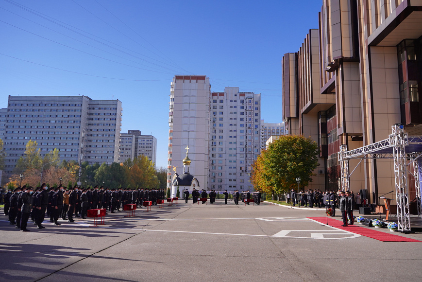 Начальник Московского университета МВД России имени В.Я. Кикотя генерал-лейтенант полиции Игорь Калиниченко отметил, что, пройдя курс начальной профессиональной подготовки, курсанты уже получили первые знания о своей будущей профессии, познакомились с историей и традициями органов внутренних дел, основами правоохранительной деятельности и сегодня подтверждают свой выбор служения на благо Отечества.