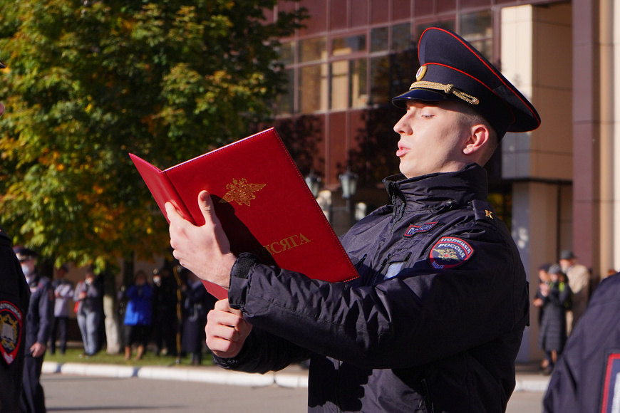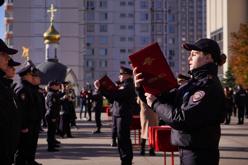 Сегодня в Московском университете МВД России имени В.Я. Кикотя состоялась торжественная церемония приведения курсантов первого курса к Присяге сотрудника органов внутренних дел Российской Федерации. В этот знаменательный день более 700 первокурсников, успешно выдержавших серьезный конкурсный отбор при поступлении на учебу, произнесли священную клятву в верности служения народу и Отечеству.