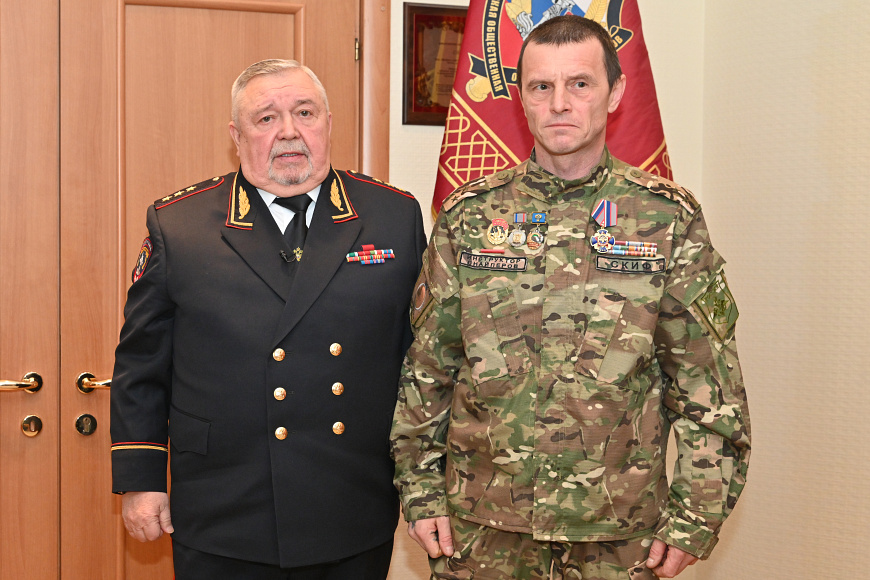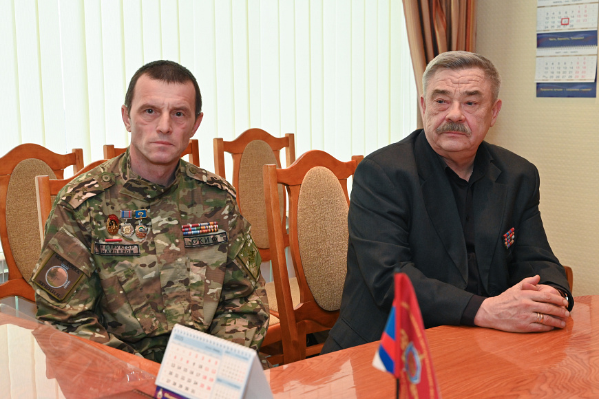 Председатель Общероссийской общественной организации ветеранов органов внутренних дел поздравил всех с наступающим Днем защитника Отечества и вручил участникам специальной военной операции награды. Коллеги в теплой и дружественной обстановке обменялись воспоминаниями о службе.