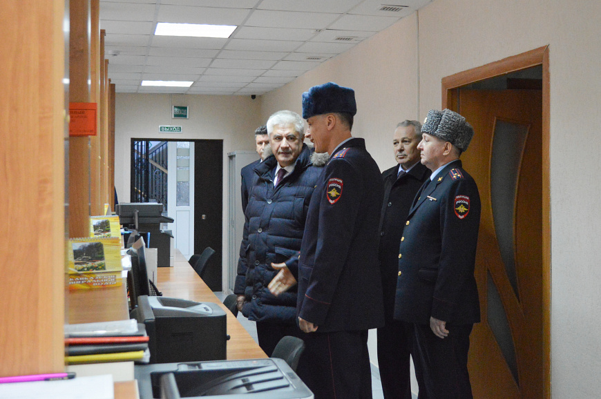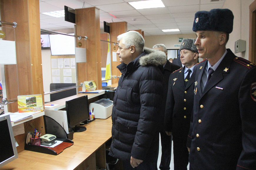 Владимир Колокольцев ознакомился с работой дежурной части, а также миграционного подразделения, специалисты которого ежедневно проводят прием граждан. Здесь созданы комфортные условия для посетителей, организована электронная очередь, на стендах и специальных табло размещена подробная информация о предоставляемых госуслугах.