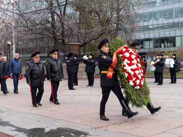 Делегацию МВД России на церемонии возложения венка и цветов к памятнику «Благодарная Россия – солдатам правопорядка, погибшим при исполнении служебного долга» возглавил заместитель Министра генерал-лейтенант полиции Владимир Кубышко.