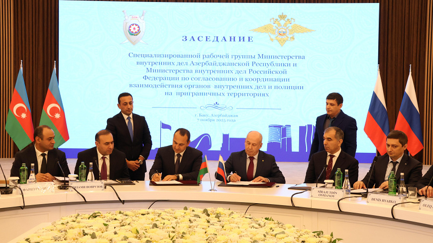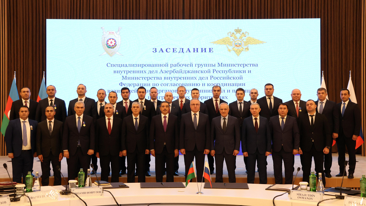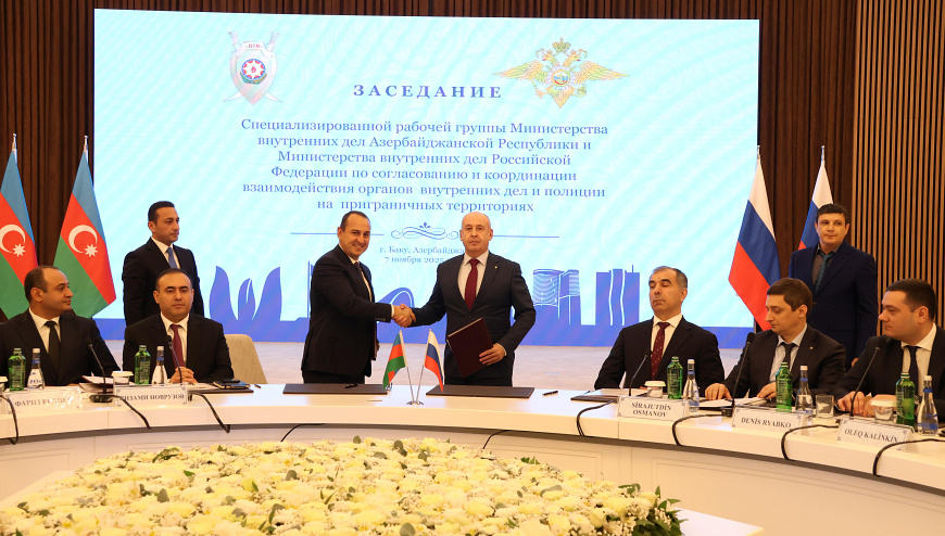 В Баку состоялось очередное заседание специализированной рабочей группы Министерства внутренних дел Российской Федерации и Министерства внутренних дел Азербайджанской Республики по согласованию и координации взаимодействия органов внутренних дел и полиции на приграничных территориях. Российскую делегацию возглавил начальник Главного управления Министерства внутренних дел Российской Федерации по Северо-Кавказскому федеральному округу генерал-полковник полиции Сергей Бачурин, азербайджанскую – первый заместитель Министра внутренних дел генерал-лейтенант полиции Сейфулла Саттар оглу Азимов.