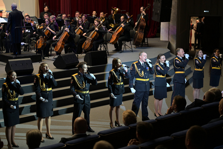 Музыкальным подарком для лауреатов, победителей и всех участников церемонии стало выступление Центрального концертного оркестра полиции России, а также победителей еще одного творческого проекта Министерства, обладателей Гран-при фестиваля музыкального творчества МВД России «Щит и лира» – вокального ансамбля Главного управления МВД России по Свердловской области «Сердце Урала».
