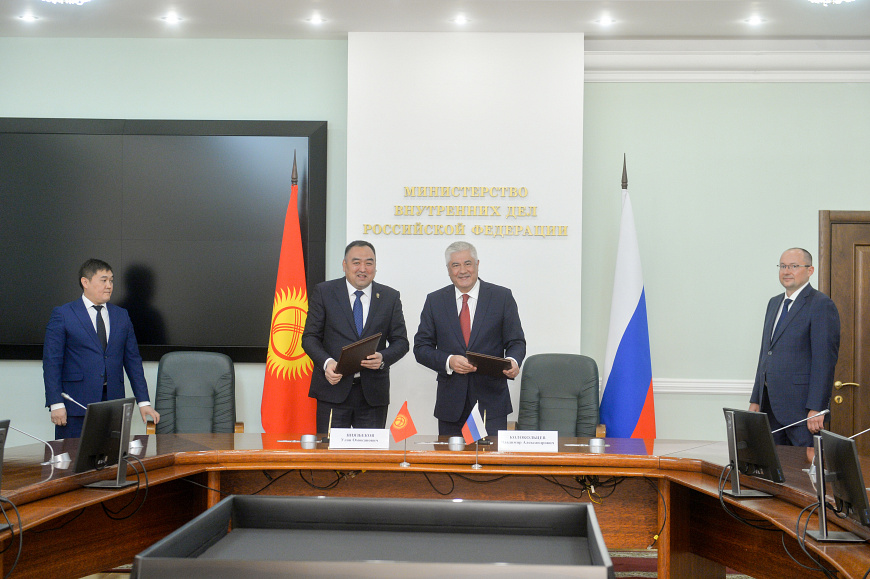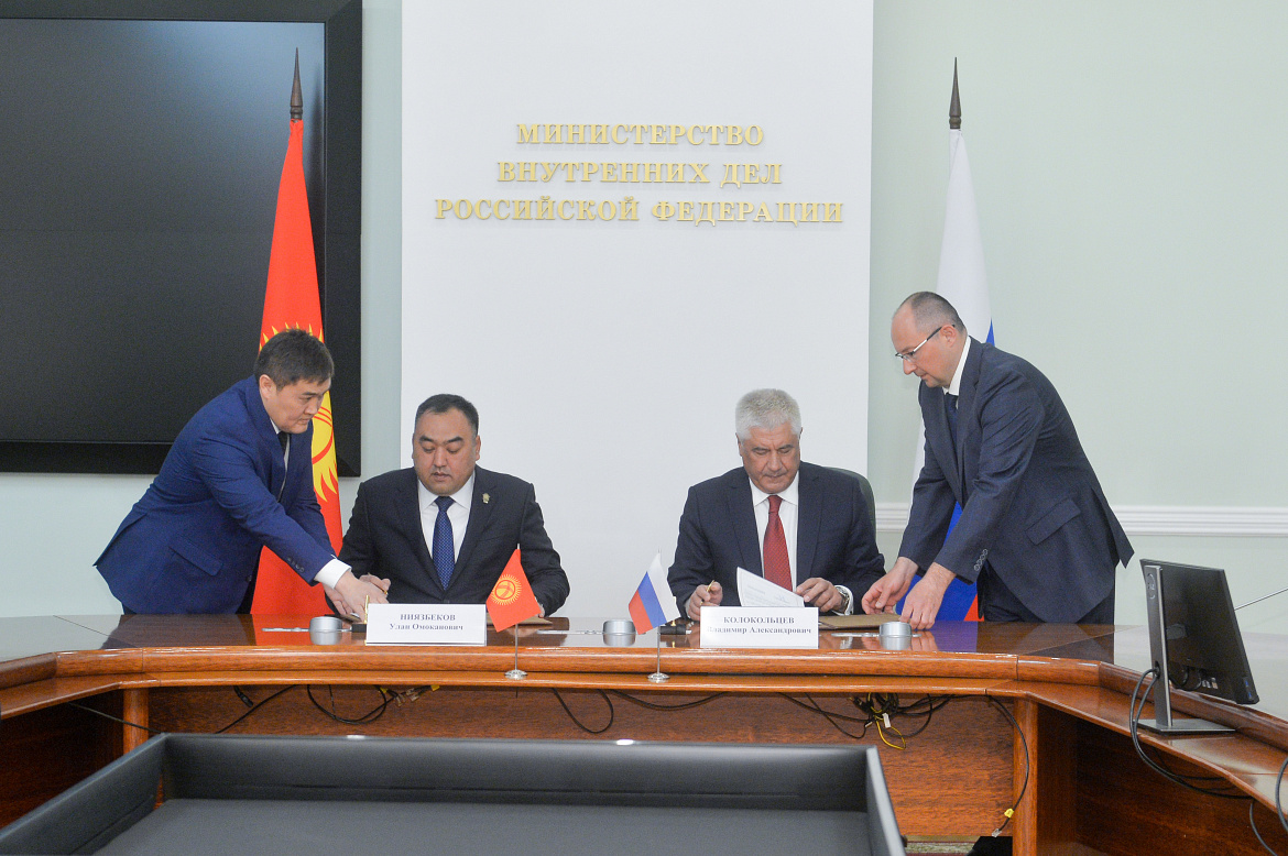 Руководители ведомств подписали Соглашение между Правительством Российской Федерации и Кабинетом Министров Киргизской Республики об информационном взаимодействии и обмене информацией в электронном виде по вопросам, относящимся к компетенции органов внутренних дел.