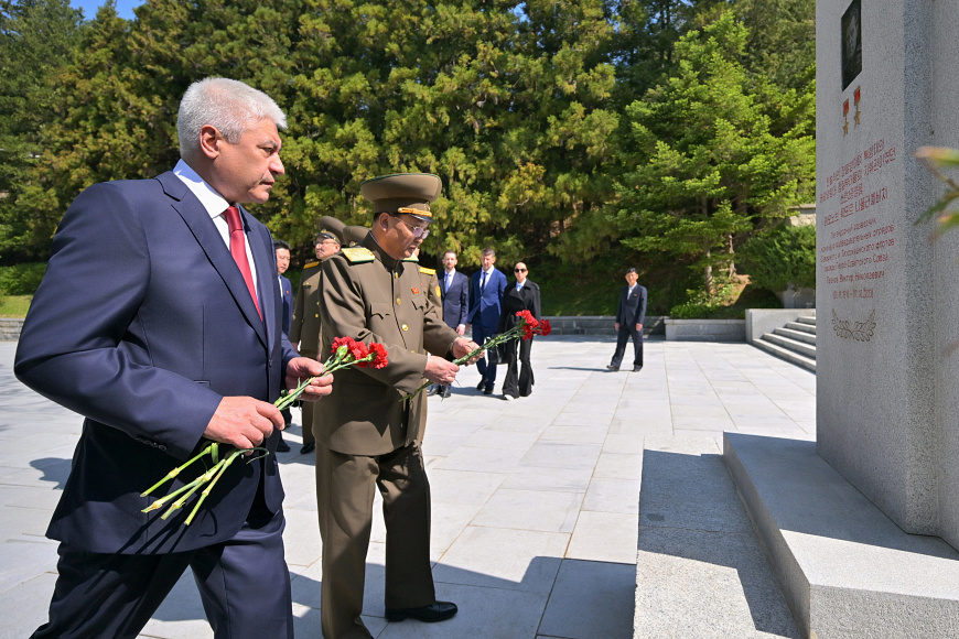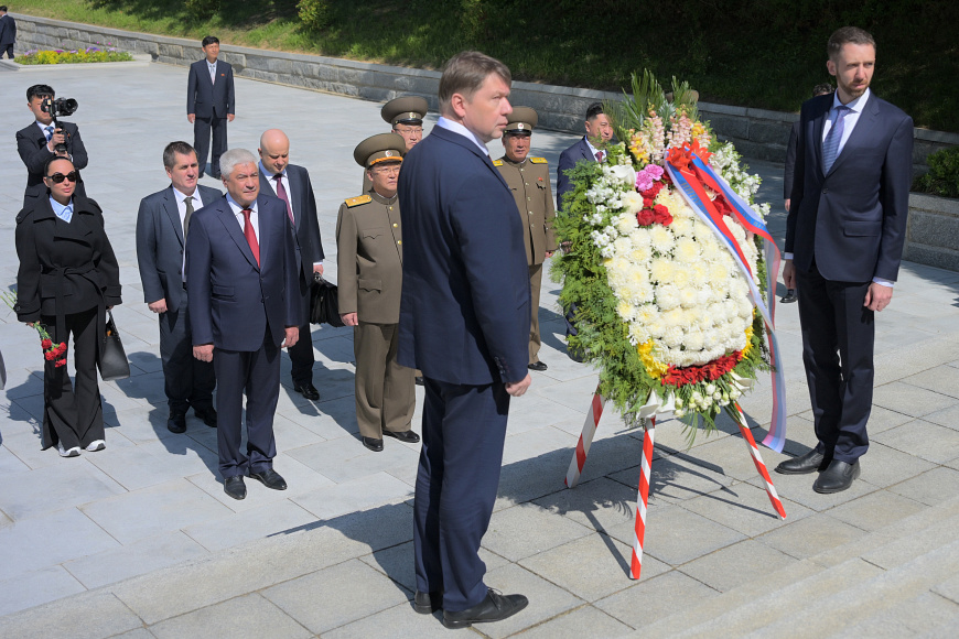 Владимир Колокольцев ознакомился с инфраструктурой города Вонсан и возложил цветы к памятнику советским воинам-освободителям