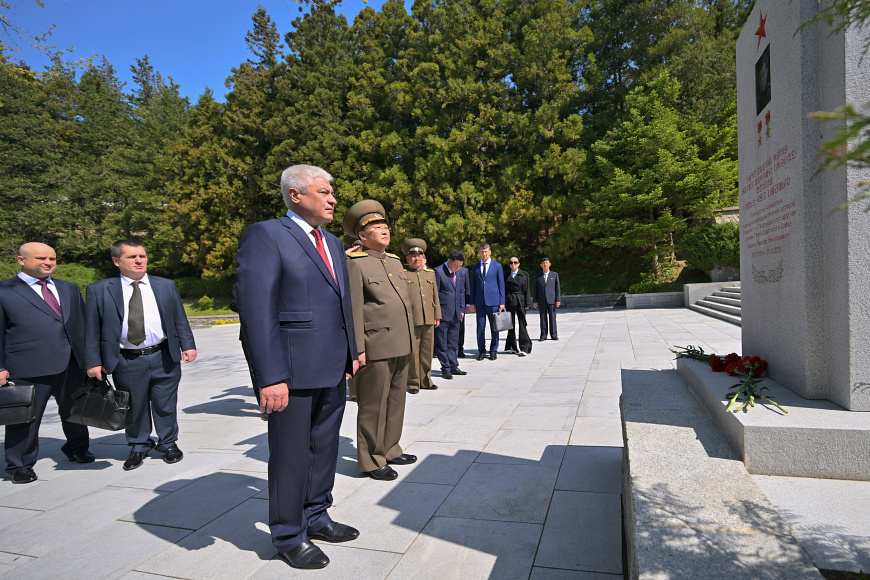 Владимир Колокольцев возложил венок к памятнику на братской могиле воинов Советской Армии. Память о солдатах, павших в 1945 году в боях за освобождение Кореи, делегация МВД России почтила минутой молчания», – сообщила официальный представитель МВД России Ирина Волк.