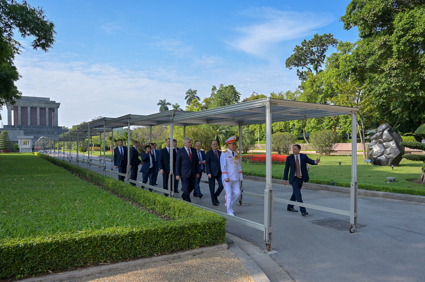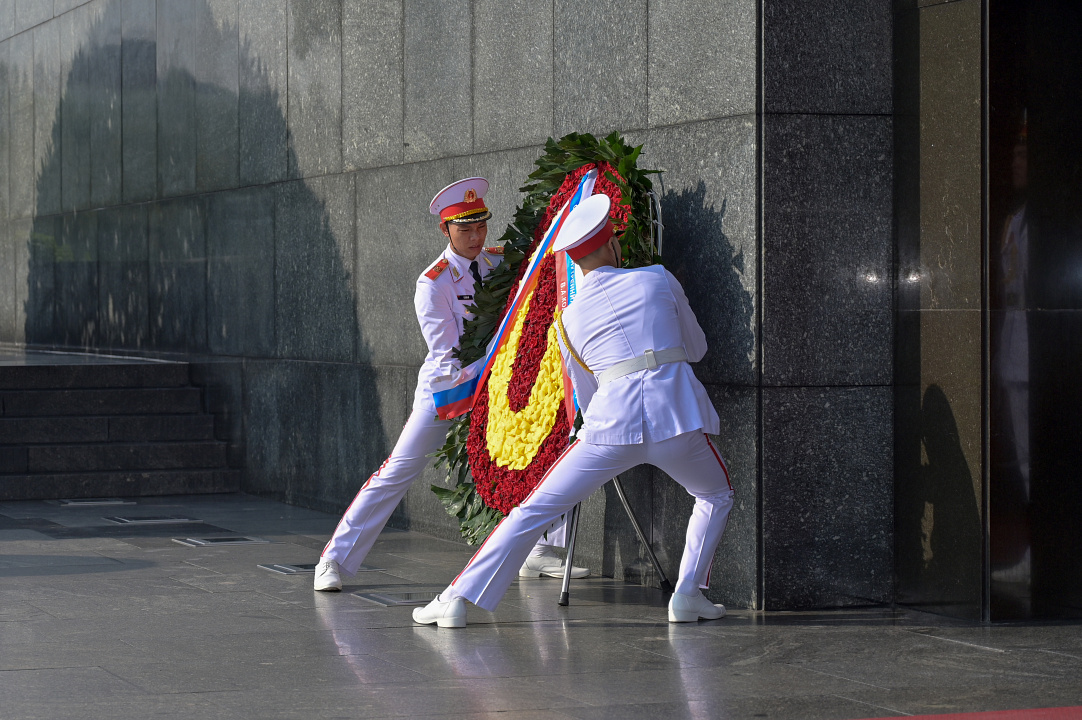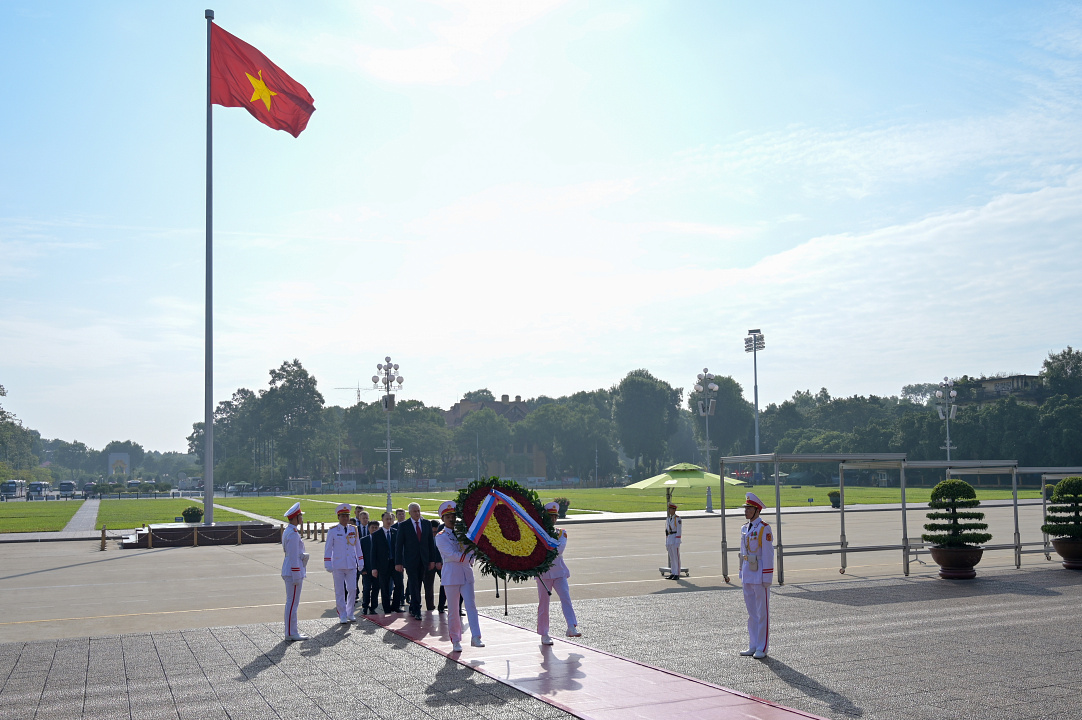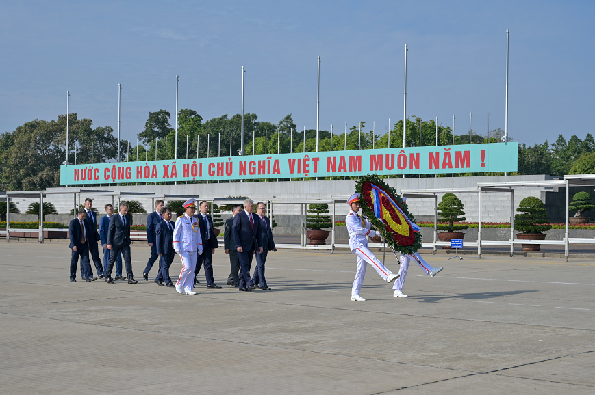 «Министр внутренних дел Российской Федерации генерал полиции Российской Федерации Владимир Колокольцев возложил венок к мавзолею первого Президента Вьетнама Хо Ши Мина.