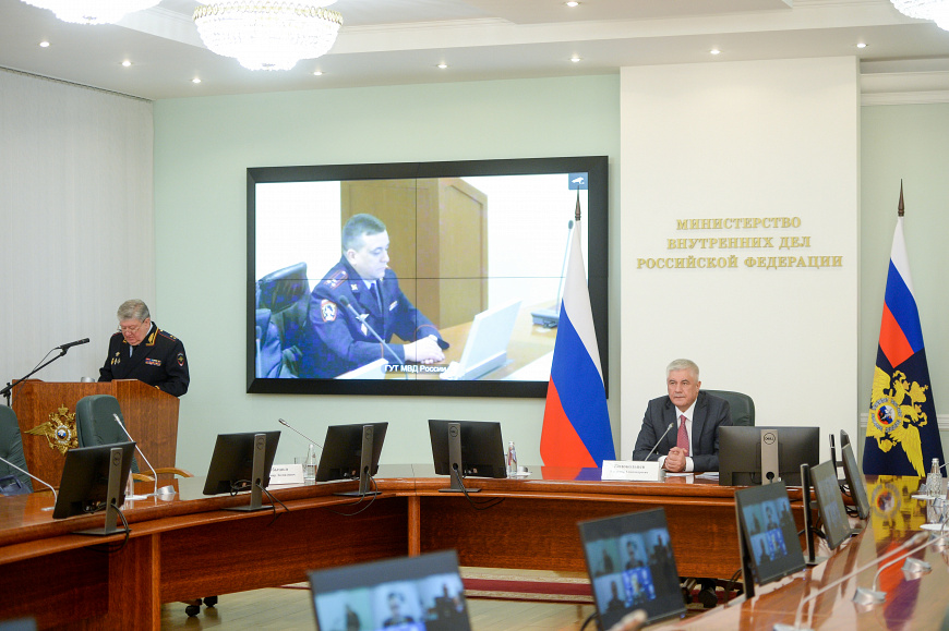 Сегодня Министр внутренних дел Российской Федерации генерал полиции Российской Федерации Владимир Колокольцев в режиме видеоконференцсвязи поздравил руководителей подразделений МВД России с присвоением очередных специальных званий высшего начальствующего состава.