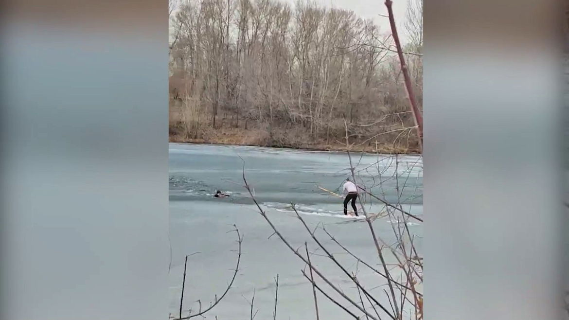 «В это время Дмитрий Лозовой, рискуя жизнью, максимально приблизился к тонущему и попытался передать ему палку. Однако лед не выдержал, и он тоже оказался в ледяной воде. Полицейский самостоятельно выбрался. Он сумел добросить палку до пострадавшего, за которую тот ухватился, и вытащил его на прочный лед. Спасенный был передан медицинским работникам.