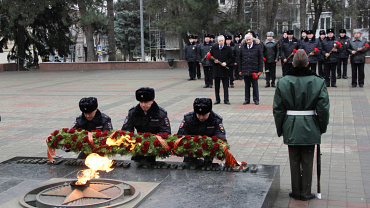 В Пятигорске Владимир Колокольцев провел рабочее совещание с руководством и личным составом городского отдела внутренних дел, посетил ведомственный музей и возложил цветы к Мемориалу «Огонь Вечной Славы».
