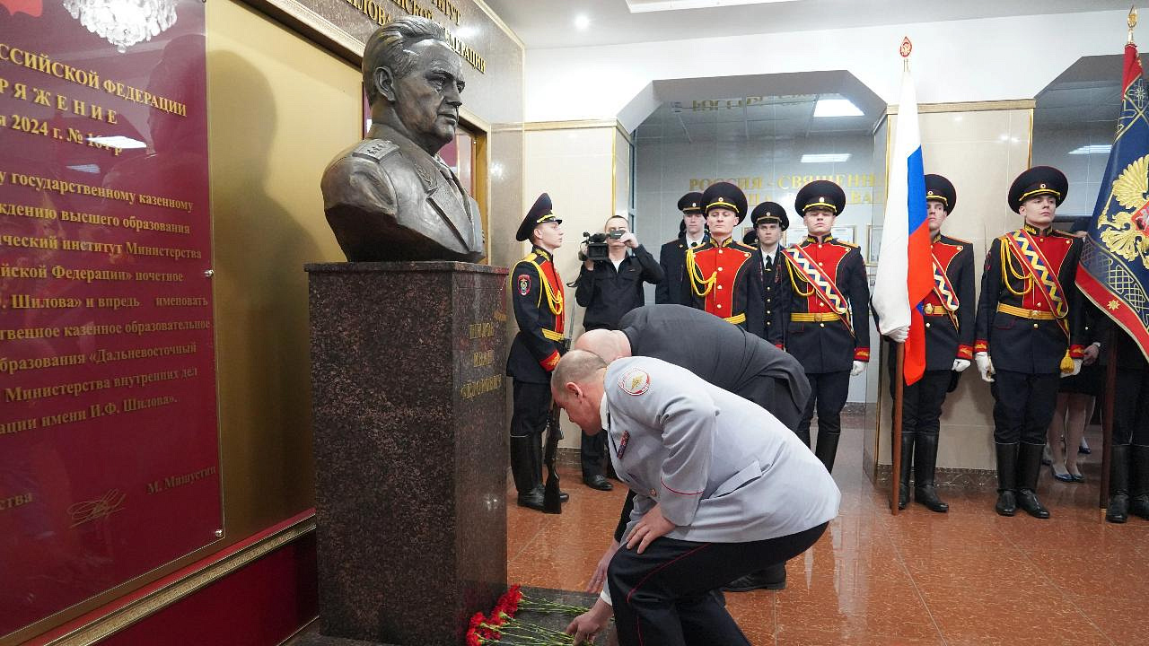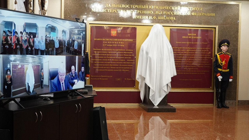 Заместитель Министра внутренних дел Российской Федерации генерал-полковник полиции Владимир Кубышко принял участие в режиме видео-конференц-связи в торжественной церемонии открытия памятного бюста легендарного руководителя генерал-полковника внутренней службы Ивана Федоровича Шилова. Это знаменательное событие состоялось в Дальневосточном юридическом институте МВД России имени И.Ф. Шилова. Имя выдающегося деятеля органов внутренних дел присвоено образовательной организации распоряжением Правительства Российской Федерации от 27 января 2024 года № 167-р.