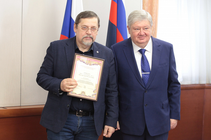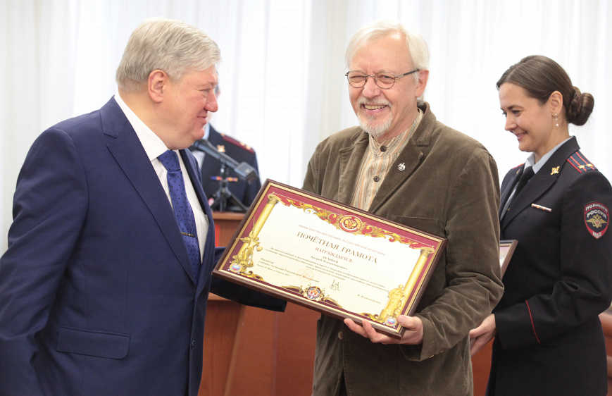 За многолетний и плодотворный труд в области изобразительного искусства, создание высокохудожественных произведений живописи, развитие отечественной художественной культуры Владимир Кубышко вручил работникам Студии художников ведомственные знаки отличия, почетные грамоты и благодарности Министра внутренних дел Российской Федерации.