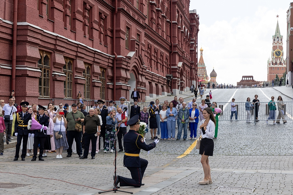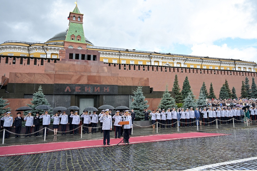 И сегодня, по традиции, здесь, на Красной площади нашим выпускникам будут вручены дипломы о высшем образовании.