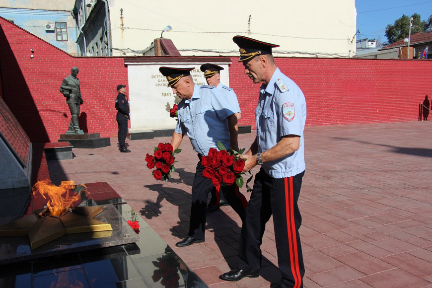 Александр Кравченко и Игорь Иванов возложили цветы к Вечному огню на Мемориальном комплексе, который посвящен памяти сотрудников органов внутренних дел, погибших при исполнении служебных обязанностей.