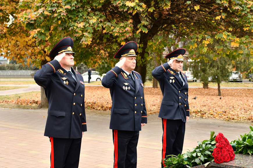 Сегодня Александр Кравченко, Василий Павлов и Юрий Плющ возложили цветы к памятнику солдатам правопорядка, погибшим в годы Великой Отечественной войны и в мирное время при выполнении служебных обязанностей, установленному в Сквере милиции в Нальчике.