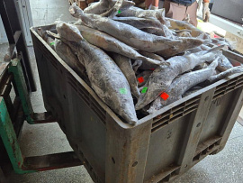 «Во время оперативно-розыскных мероприятий полицейские остановили на трассе грузовой автомобиль. В ходе проверки в кузове сотрудники обнаружили спрятанные под упаковками с луком 1805 тушек рыб семейства осетровых общим весом 6,5 т.