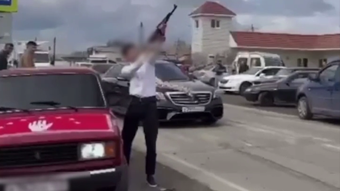 В Интернете появилась видеозапись, на которой неизвестный на одной из улиц поселка Эркен-Шахар выходит из машины и несколько раз стреляет вверх. Полицейские в кратчайшие сроки установили личность нарушителя и доставили его в местное подразделение полиции. В ходе профилактической беседы 19-летний молодой человек признал свою вину, у него был изъят предмет, конструктивно схожий с автоматом.