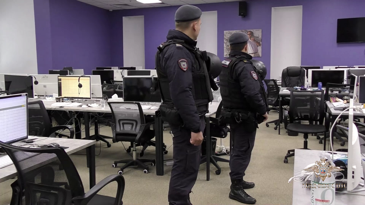 «Сотрудниками ГУУР МВД России и ФСБ России при содействии ЭКЦ МВД России, ГУВМ МВД России и ГУ МВД России по г. Москве в кол-центрах проведены обыски и задержания. На момент прибытия полицейских в офисах работали свыше 300 человек, среди которых – граждане более чем 10 государств ближнего и дальнего зарубежья.