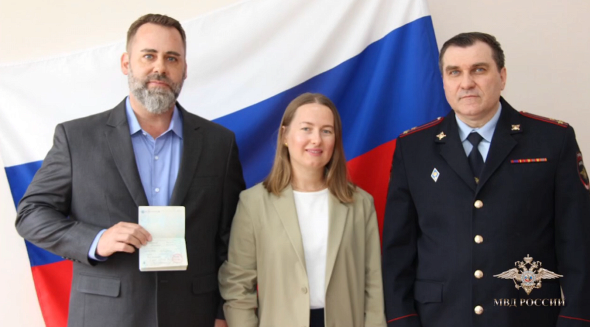Начальник Управления по вопросам миграции полковник полиции Олег Дубовицкий лично вручил Михаэлю разрешение на временное проживание и тепло поздравил с получением права законно находиться в России, пожелав ему и его супруге Юлии крепкого здоровья и счастливой жизни в России.