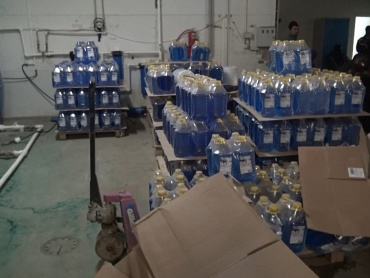 В гаражных боксах и складских помещениях полицейские обнаружили свыше 26 тысяч литров спиртосодержащей жидкости в бутылках с логотипами известных марок.