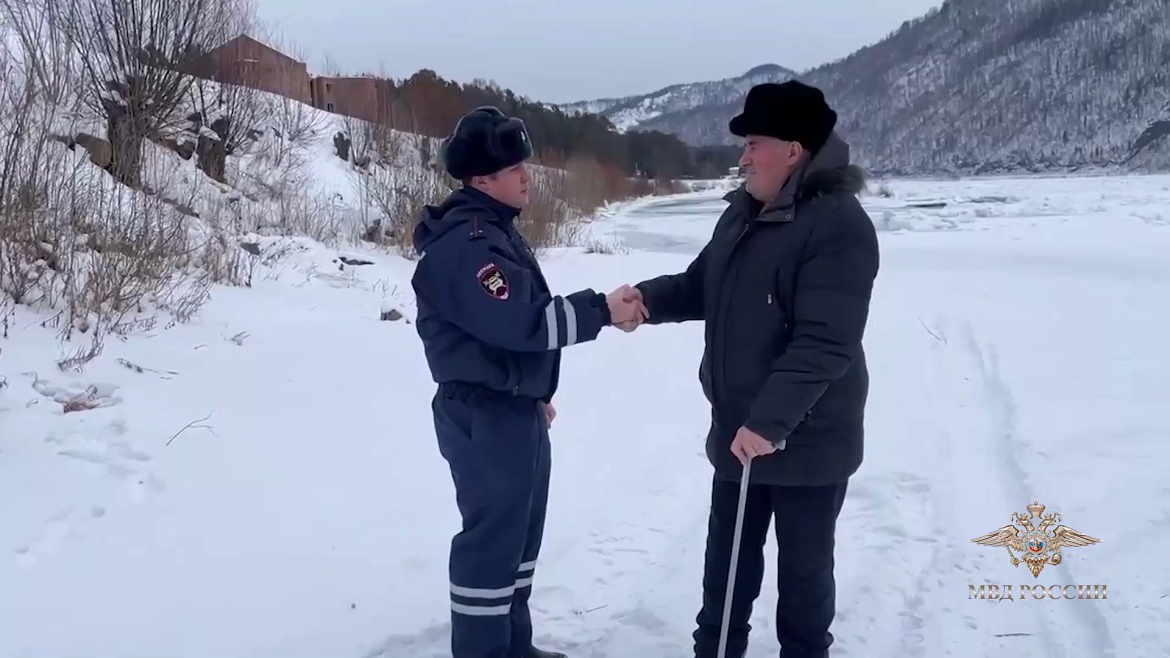 В дежурную часть полиции поступило сообщение о том, что на реке Абакан, в районе улицы Кулакова за дамбой, мужчина провалился под лед. Информация была немедленно передана экипажам, находящимся на маршруте патрулирования. На место происшествия направился сотрудник Госавтоинспекции отделения МВД России по городу Абаза лейтенант полиции Дмитрий Федянин.