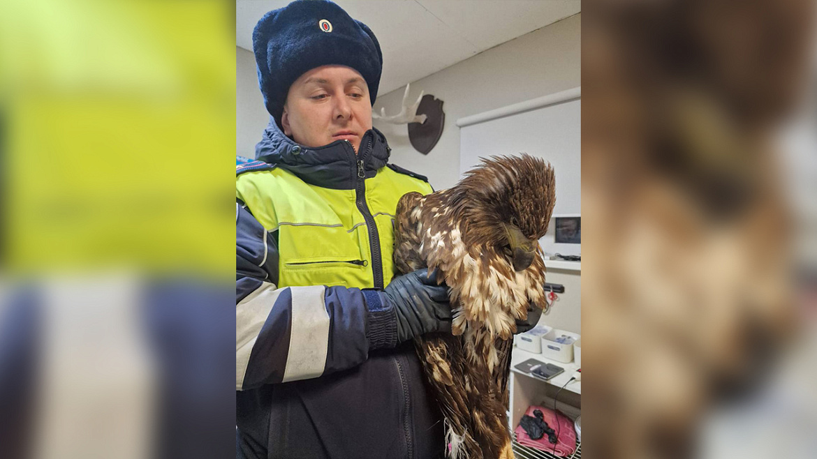 «Полицейский решил найти его и при необходимости оказать помощь. Обследовав местность, сотрудник обнаружил обессилевшего орлана-белохвоста – представителя вида, занесенного в Красную книгу Российской Федерации.