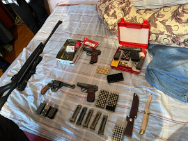 «В ходе обысков полицейские обнаружили несколько предметов, конструктивно схожих с пистолетами и револьвером, патроны различного калибра, гранату, ручные противотанковые гранатометы, огнемет и другие предметы, имеющие доказательственное значение. Кроме того, изъяты кусты конопли и емкости с высушенным и расфасованным наркотиком различных сортов», – рассказала Ирина Волк.