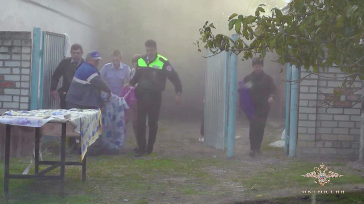 От очевидцев сотрудники полиции узнали, что в доме находится женщина, которая не может самостоятельно передвигаться. Нариман Курбанов и Магомед Шаманов вместе с участковым уполномоченным полиции Артемом Ениным вынесли из помещения 87-летнюю пострадавшую и передали прибывшим врачам. Ее доставили в медицинскую организацию, где оказали необходимую помощь. В настоящее время жизни пенсионерки ничего не угрожает», – сообщила официальный представитель МВД России Ирина Волк.