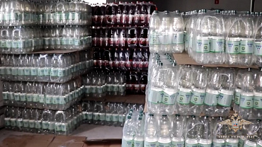 В одном из складских помещений обнаружено около 25 тысяч бутылок со спиртосодержащим коктейлем, этикетки, крышки, пустые бутылки и пищевые красители.