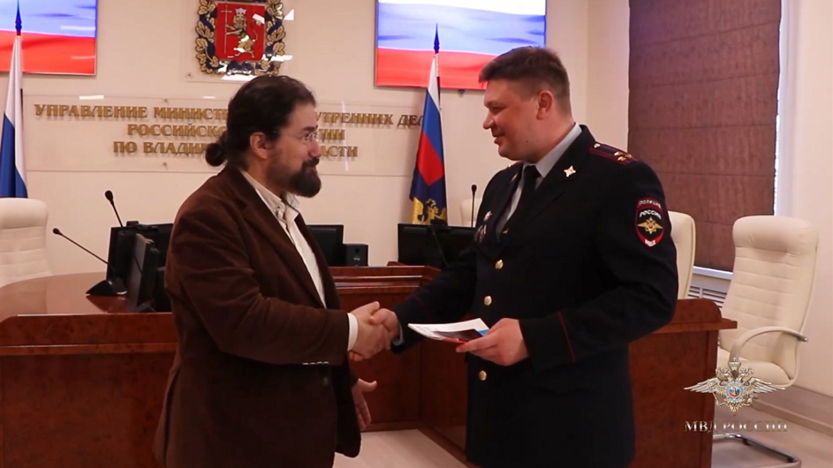 «Начальник Управления по вопросам миграции УМВД России по Владимирской области полковник полиции Олег Шурыгин в торжественной обстановке вручил паспорт гражданина Российской Федерации известному композитору и пианисту Николя Челоро.