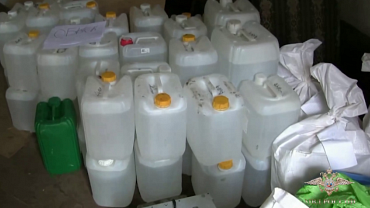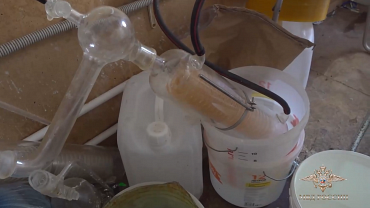 Полицейские изъяли из лаборатории различное оборудование, шесть ведер с 32 кг мефедрона и 900 л прекурсоров, более 250 кг порошкообразного вещества и неустановленной жидкости.