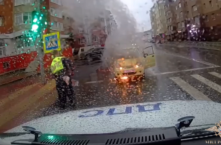 Полицейские доставили замерзшего подростка на берег и усадили в служебный автомобиль, где он смог немного согреться в ожидании вызванных медиков.