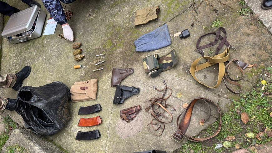 На место происшествия прибыла следственно-оперативная группа. При поддержке ОМОН «Беркут-Юг» регионального Управления Росгвардии были изъяты три разрывных боеприпаса промышленного изготовления и три взрывателя к ним, более 240 исправных патронов к различным видам ручного огнестрельного оружия и три магазина к автомату Калашникова, а также различное обмундирование.