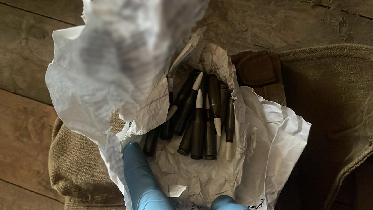 Стражи правопорядка осмотрели территорию дома. На чердаке они обнаружили целый арсенал патронов и несколько частей гранат.