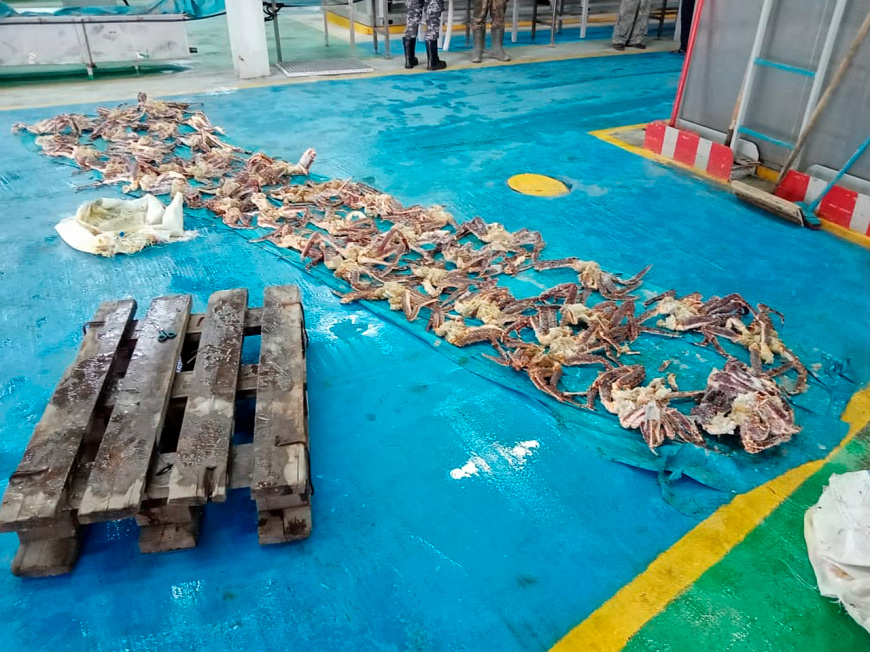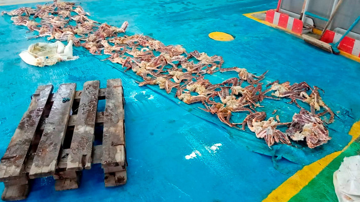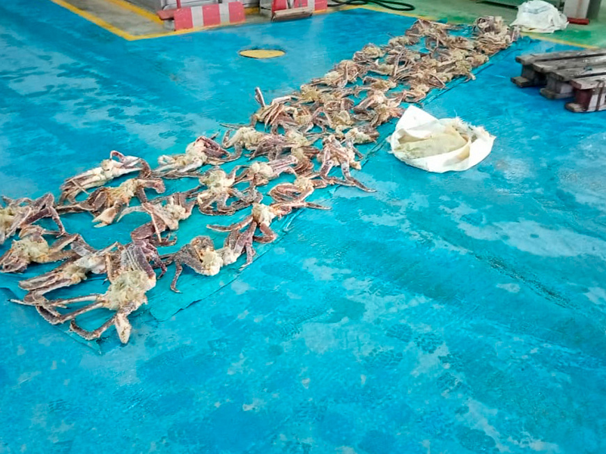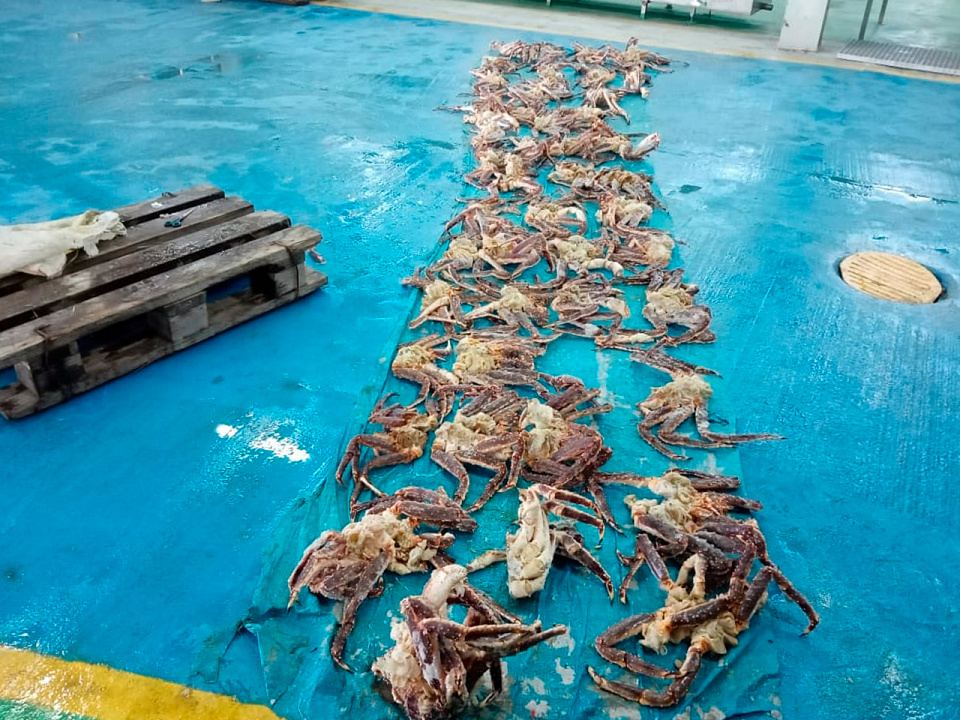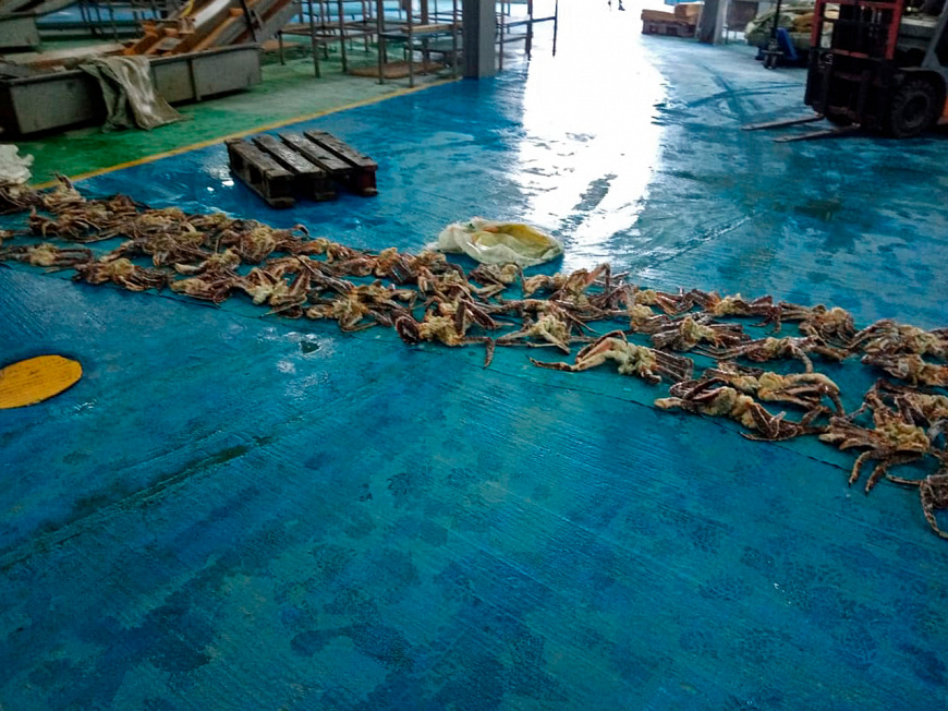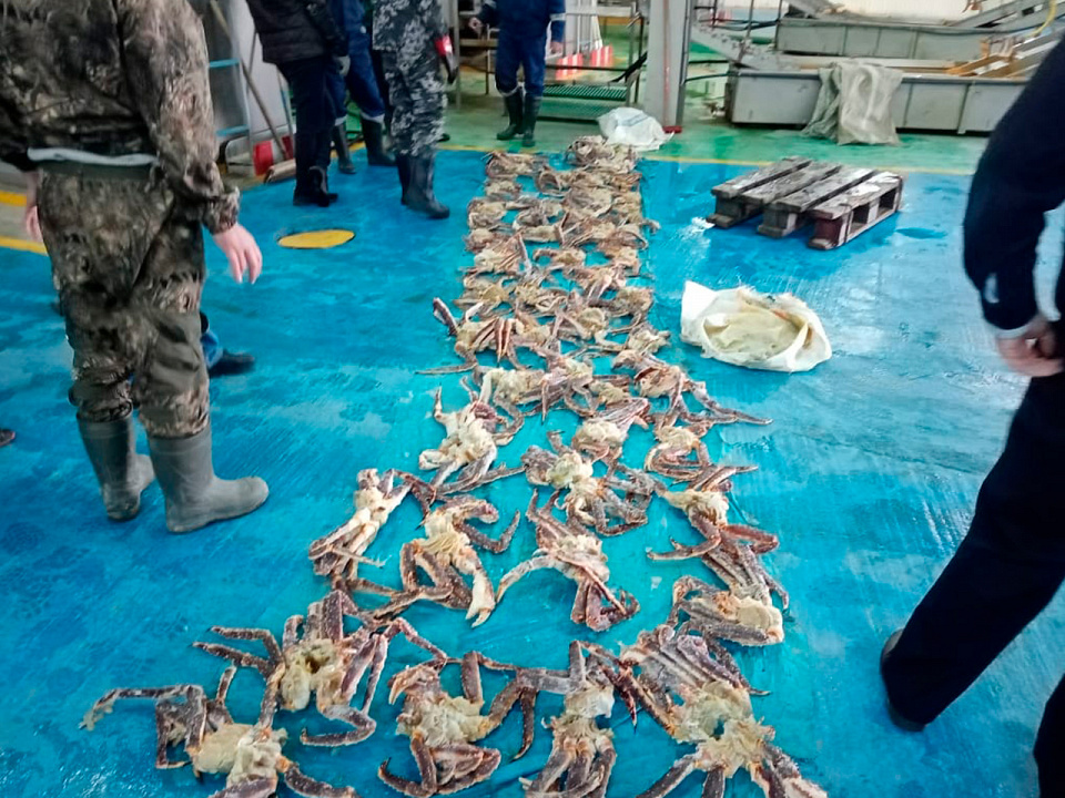В кузове автомашины силовики обнаружили 39 мешков, в которых находились половинки камчатского краба общей массой более одной тонны. Документов, подтверждающих законность вылова и транспортировки морепродуктов, водитель не имел.