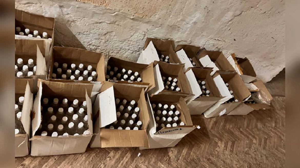 Факт противоправной деятельности злоумышленников выявили сотрудники Управления экономической безопасности и противодействия коррупции УМВД России по Оренбургской области в ноябре прошлого года. При обследовании дома и гаража бутлегера оперативники обнаружили 3340 немаркированных бутылок водки различных наименований, 3000 литров спирта в объёмной таре, более 3000 литров уже размешанной спиртосодержащей жидкости в бочках и порядка тысячи бутылок с алкоголем без этикеток. Общая стоимость изъятого составила более 2,5 млн рублей.
