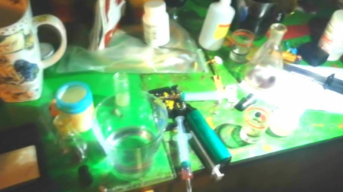 При обследовании жилого помещения полицейские обнаружили и изъяли 10 шприцев с остатками вещества, 2 самодельные курительные трубки, электронные весы и другие предметы, используемые для потребления наркотиков, а также свёрток с изготовленным неизвестным веществом весом около 1 грамма.
