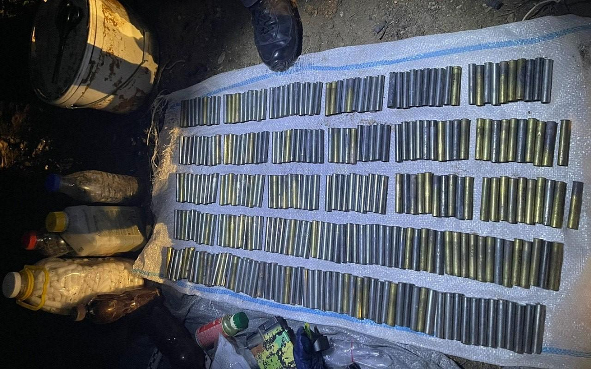 Из обоих тайников, закопанных в земле, оперативники изъяли охотничий гладкоствольный карабин Сайга-410С, гладкоствольное самозарядное ружьё Сайга-20С, более 370 патронов, шесть магазинов, а также затвор, металлическую рукоять, самодельный патронташ, порох, металлические шарики, картонные пыжи, три прицела и тактические перчатки.